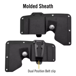 - Glass filled nylon sheath with reversible belt clip and bottle opener