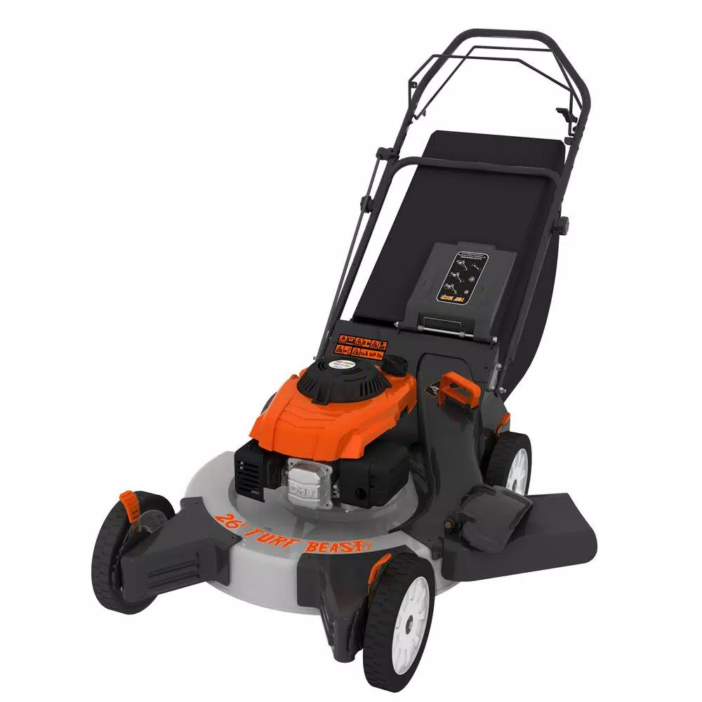 This 26 in. mower is ideal for homeowners on-the-go with large yards. Reduce your mowing time and cover more ground is less time with this 208 cc Turf Beast walk behind mower. Self-propelled fixed speed rear wheel drive.