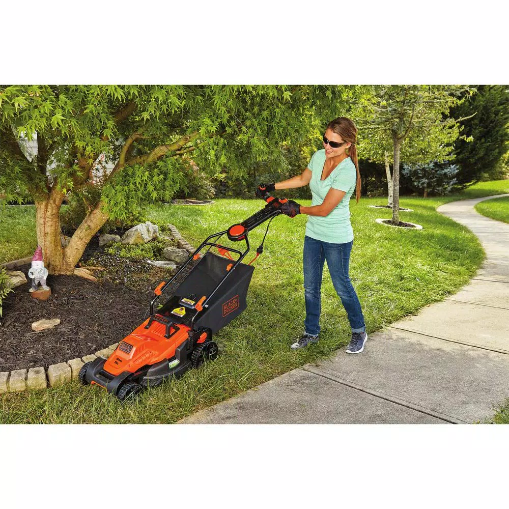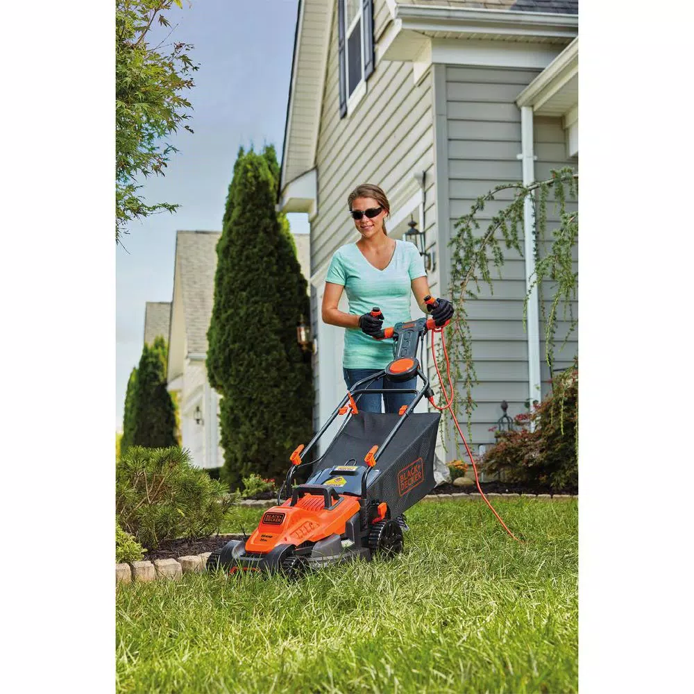 Lightweight and easy to maneuver, this electric lawn mower features our Pivot Control Handle. This mower gets peak performance with a Winged Blade providing 30% better collection. Push-button start makes it easy to use, and 6 height adjustments from 1 in. to 3 in. let you give your lawn the perfect mow.
