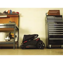 - Push mower features 3-in-1 mulching, bagging, and side discharge