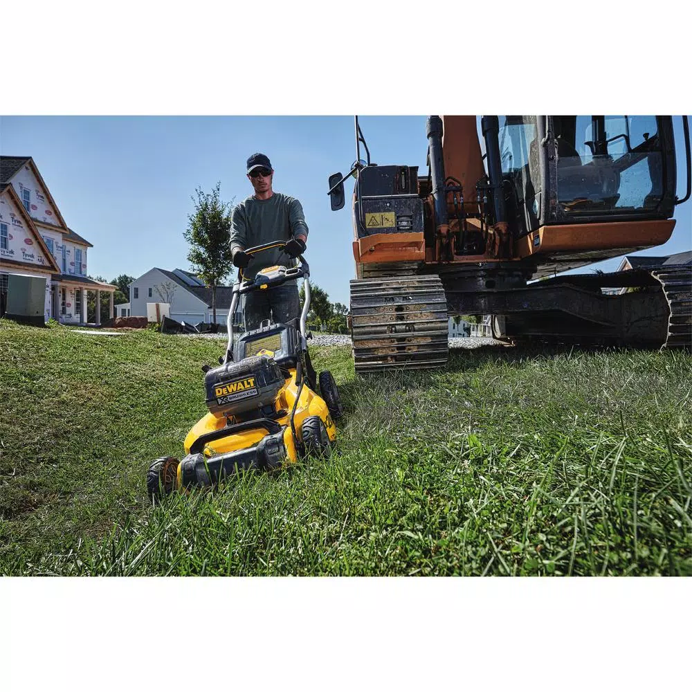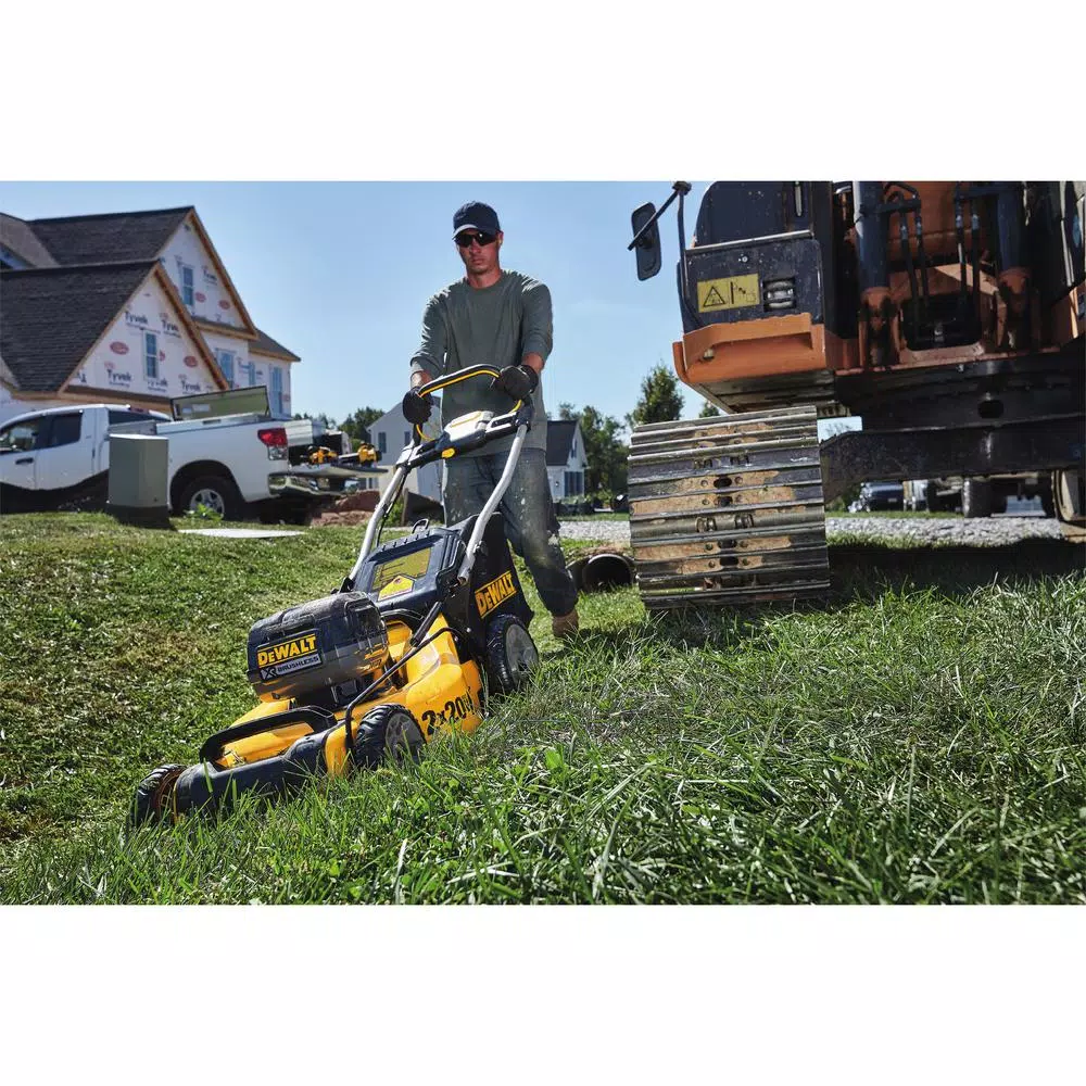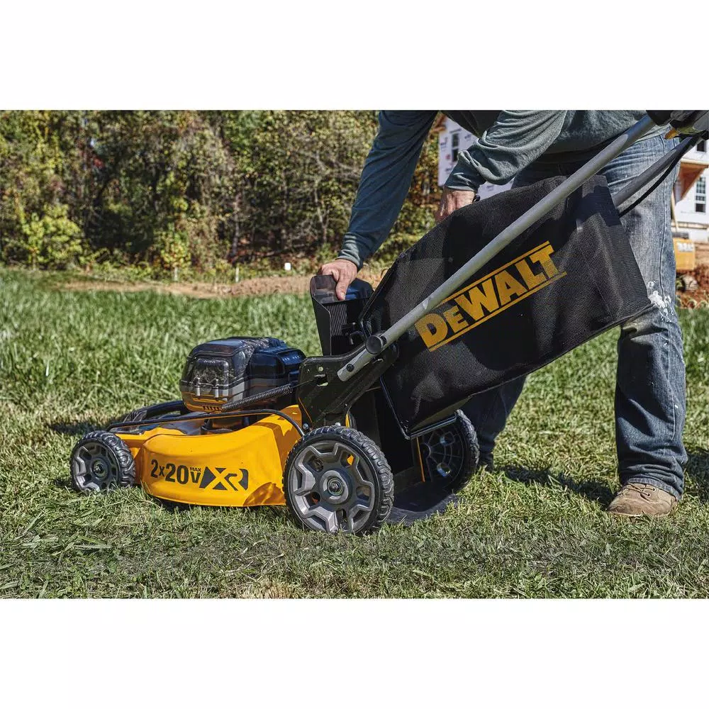 The 2x 20-Volt MAX DEWALT 3-in-1 Cordless Lawn Mower is powered by (2) 20-Volt MAX batteries to deliver 2x the voltage. The high-output brushless motor delivers powerful performance and increases torque in high overgrowth. The lawn mower’s 3-in-1 capability allows for mulching, bagging, or rear clipping discharge. It is perfect for properties up to 1/4 acre. For optimal performance, the battery-powered lawn mower can be paired with high capacity 20-Volt MAX DEWALT batteries or FLEXVOLT (R) batteries for extended runtime and maximum compatibility across DEWALT battery systems. This cordless lawn mower is designed to help you get the job done with a 20 in. metal deck, quick and easy single lever height adjustment, and folding handles for compact upright storage.