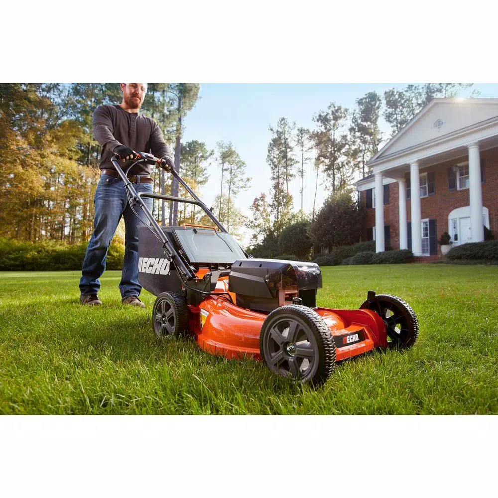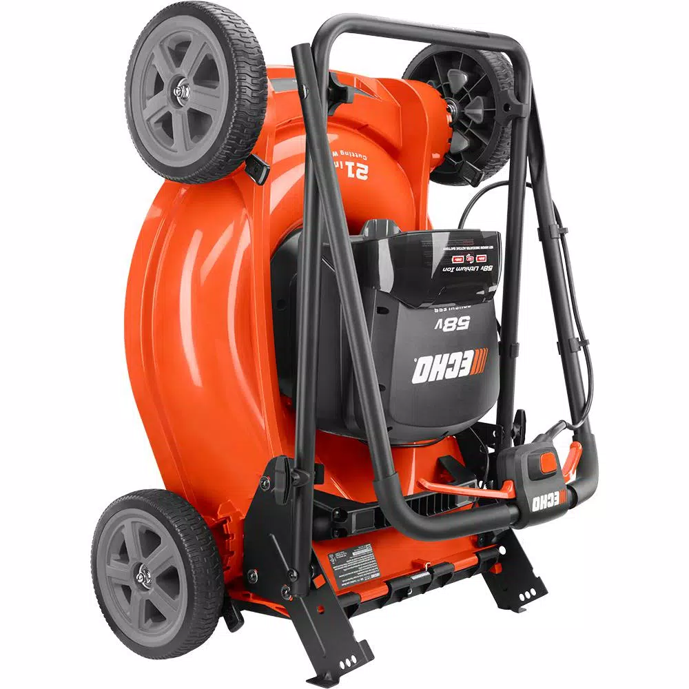 Mow the yard like a pro with the ECHO 58-Volt Cordless Lawn Mower. The unique brushless motor delivers exceptional power, runtime and durability and can handle even the thickest grass. The handle adjusts to 3 different positions for perfect comfort. When the job is finished, the mower easily stores in a compact vertical or horizontal position simply by collapsing the quick-release handle. The mower, battery and charger are backed by an industry-leading, 90-day money-back guarantee, a 5-year consumer warranty, and a 2-year commercial warranty.