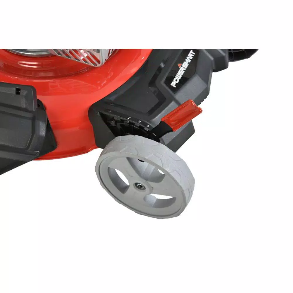- 5-position height adjustment allows you to change the cutting height to easily cut grass, weeds and overgrowth and the 8 in. rear wheels make it easy to push