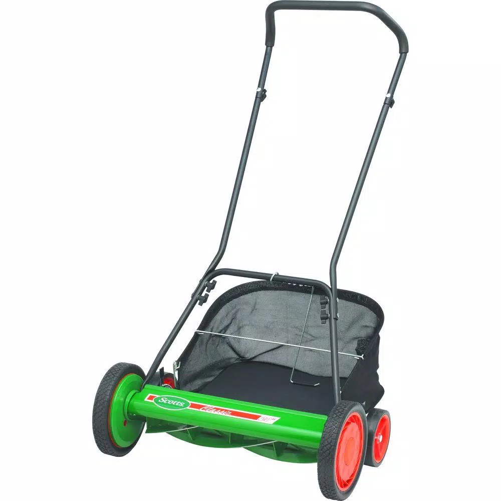 The classic Scotts 20 in. 5-Blade Push Reel Mower is the clean, quiet, and healthy way to take care of your lawn. Gas-powered rotary mowers produce emissions and the blades hack at the grass, tearing vital fluids from the grass leaving them open to disease and insect attacks. With Scotts 20 in. reel mower there is no ripping or tearing of the grass blades. The 5-blade reel snips the grass, cutting each blade of grass like a pair of scissors, leaving your lawn greener and healthier. With the grass catcher included, this reel mower is an easy way to maintain your lawn. This reel mower is easy to assemble, lightweight, easy to operate and convenient to store. Keep your lawn healthy with Scotts reel mowers.