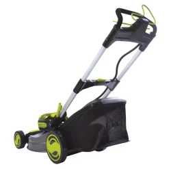 Meet the next-generation in cutting-edge grass-grooming tech in the legendary line-up of iON yard garden tools: the 100-Volt 20 in. Cordless Lawn Mower from Sun Joe. Powered by the latest revolution in the legendary iON series, Sun Joe features high-capacity, 100-Volt lithium-ion battery cells that deliver no-fade power performance, with zero carbon emissions for cleaner air. Choose from 2 power options to suit your project. Pick a 2.5 Ah battery for mid-size lots and up to 45-minutes of mowing time or upgrade to a 5.0 Ah battery for larger lots and up to 90-minutes of continuous runtime. iONs 1000-Watt brushless motor is engineered for efficiency, providing you with maximum motor performance and extended motor life to keep your mower running stronger, longer. Sun Joes iON takes the labor out of mowing your yard. The variable, self-propelled motor saves you time and energy, moving the unit forward for an effortlessly beautiful lawn without all of the strain. iONs adjustable speed settings let you set the perfect pace choose how fast or slow you want to go with the integrated speed dial. Customize your cutting height with iONs 7-position manual height-adjustment lever choose from 1.2 in., 1.57 in., 1.97 in., 2.36 in., 2.76 in., 3.35 in. and 3.75 in. for the perfect, precise cut tailored to your yard. Sun Joes included 13.2 Gal. grass-collection bag makes disposing of lawn clippings quick and easy.