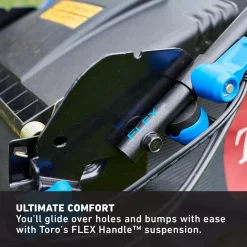 - Ultimate comfort; you’ll glide over holes and bumps with ease with Toro’s FLEX Handle suspension; no more achy hands and stiff muscles