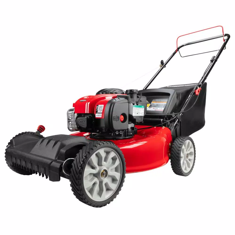 The Troy-Bilt TB200 self-propelled mower reduces mowing effort and features a dependable Prime ‘N Pull Briggs and Stratton engine for easy starting. Single speed front wheel drive makes it easier to maneuver while mowing. Dual-lever height adjusters are conveniently located to quickly adjust the cutting height and the TriAction cutting system uses a rake guard, symmetrical deck and specialized blade to deliver a clean, even cut every time. The TB200 push mower comes with both side discharge chute and mulch kit for disposing of grass clippings. You can depend on Troy-Bilt to keep yardwork from feeling like a chore, and we won’t let you down.