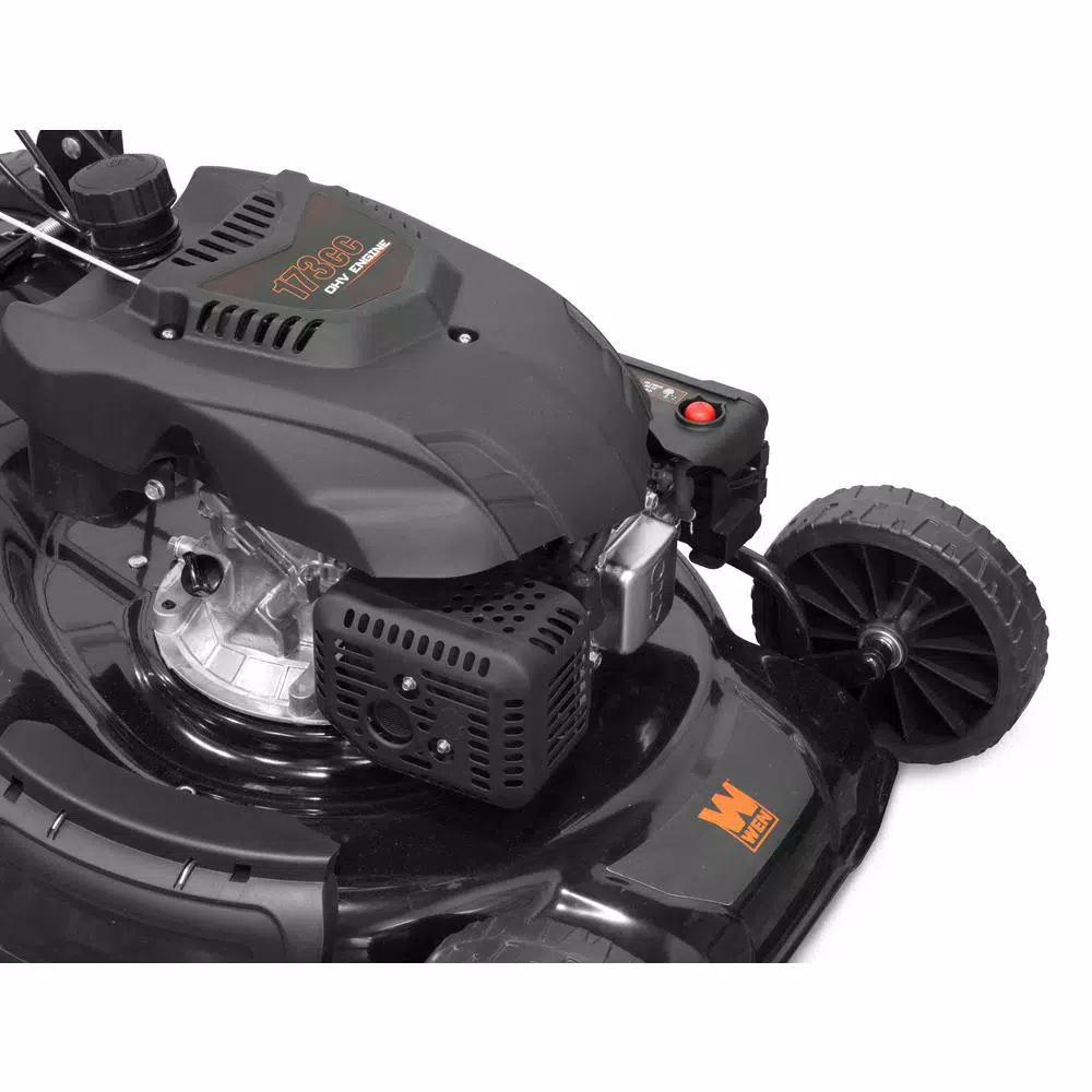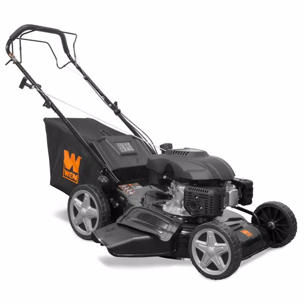 Remember when you had the best yard on the block. Get the perfect cut with the WEN 173cc 21 in. Self-Propelled Gas Lawn Mower. With four different modes of operation, you’ll have the option to mulch, bag or use the side or rear discharge chutes, depending on the needs of your particular yard. With a collapsible handle and a compact and lightweight design, storage and transportation have never been easier. The 173cc engine creates 3.3kW of power, rotating the 21 in. blade up to 2800 times per minute. Easily adjust the cutting height between 8 different stops ranging from 1 in. to 3 in. The self-propelled rear-wheel drive takes the push out of push mowing, helping you to get the job done faster. The extra-large 8 in. front wheels and 10 in. rear wheels glide over tough and bumpy terrain with ease. And because its a WEN product, your mower comes backed by a 2-year warranty, a nationwide network of skilled service technicians and a friendly customer help line. Remember when your yard was the talk of the town. Remember WEN.
