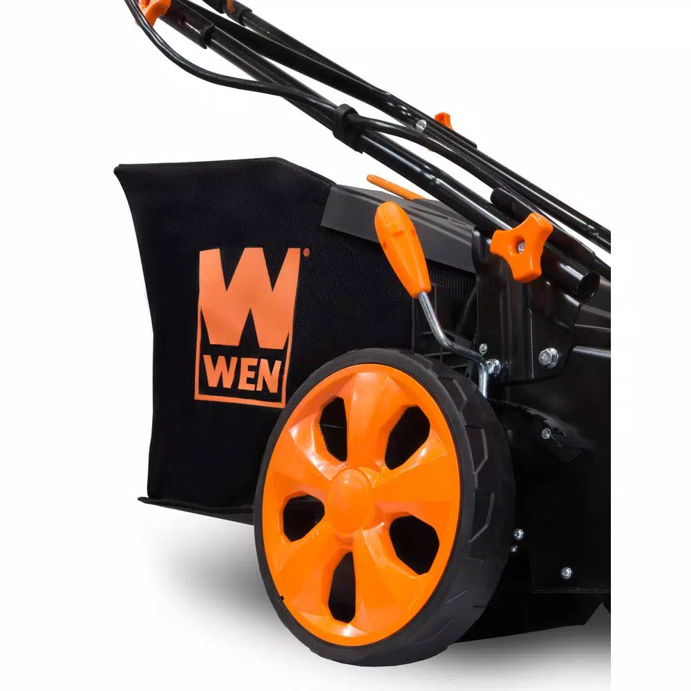 Ditch the pull cords, the gasoline, the oil, and the carbon emissions with the WEN 40V Max Lithium Ion 21 in. Cordless 3-in-1 Lawn Mower. With 3-different modes of operation, you will have the option to mulch, bag, or use the side discharge chute depending on the needs of your particular yard. Our dual-port battery dock accepts 2-batteries at a time, automatically switching between the 2 when 1 battery runs out. With a collapsible handle and a compact design, storage and transportation have never been easier. Electric start means the mower powers up quickly without the aid of any additional off-season maintenance. The 40V batteries rotate the 19.7 in. blade up to 2850 RPM, making easy work out of even the thickest of grass. Easily adjust the cutting height between 6-different stops ranging from 1.5 to 4 in. The onboard battery indicator keeps you up to speed on the remaining battery life while the 10 in. rear wheels glide over tough terrain with ease. Our intelligent motor automatically adjusts its torque depending on the grass thickness, allowing users to both save battery life and maximize the machineβs lifespan. And because its a WEN product, your mower comes backed by a 2-year warranty, a nationwide network of skilled service technicians and a friendly customer help line.