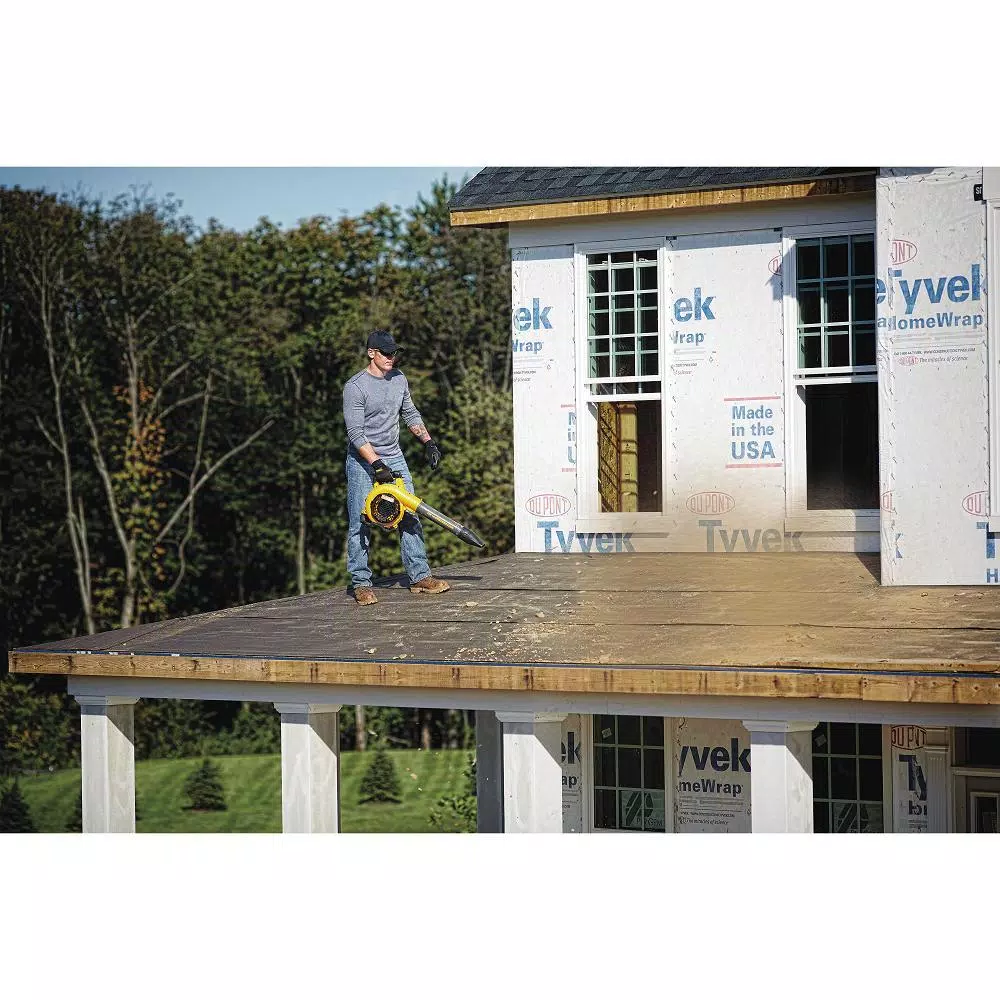 The DEWALT 60-Volt MAX Handheld Blower powers through debris at 129 MPH. It features a variable speed trigger and speed lock for total power control, and its lightweight and ergonomic design maximizes control and minimizes stress on your arms. It has a 60-Volt MAX FLEXVOLT battery that powers 60-Volt MAX tools or it can be backwards compatible to work with 20-Volt MAX tools.