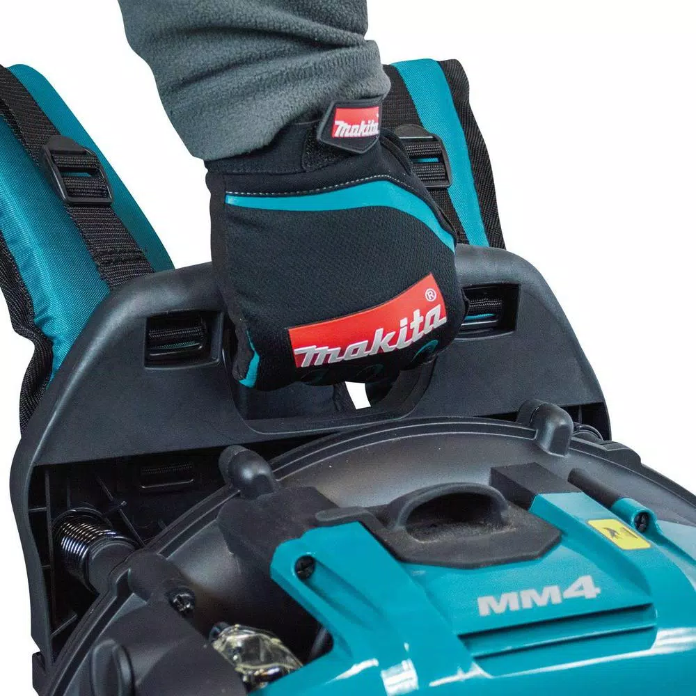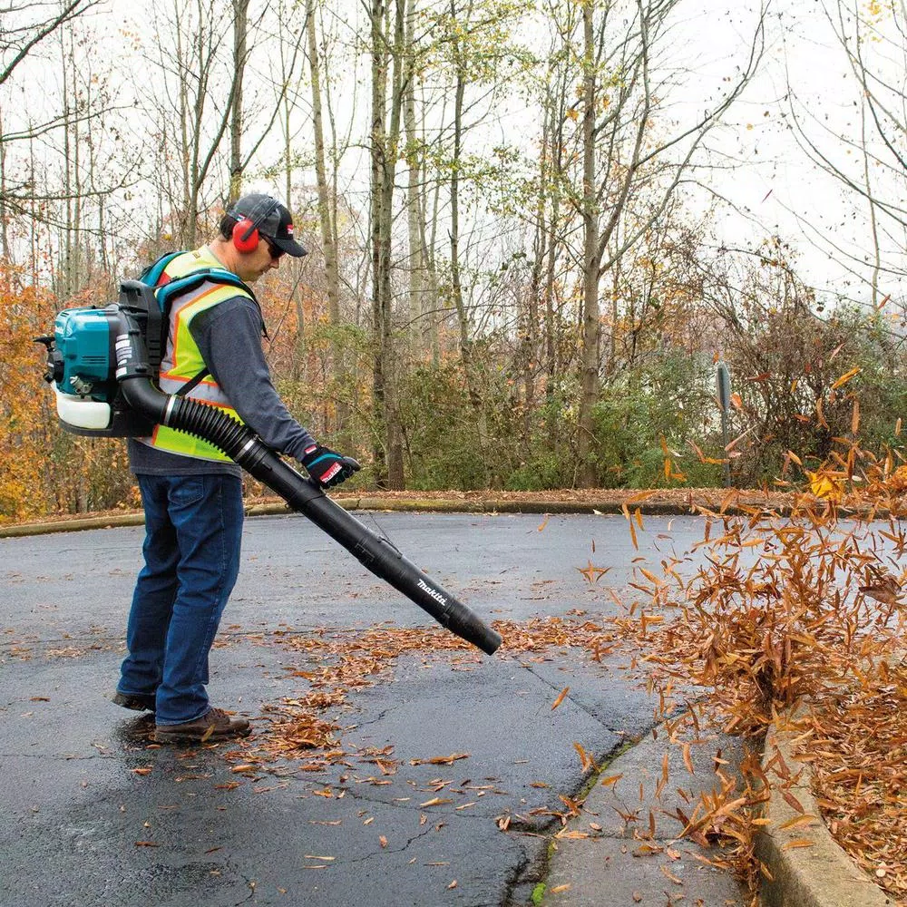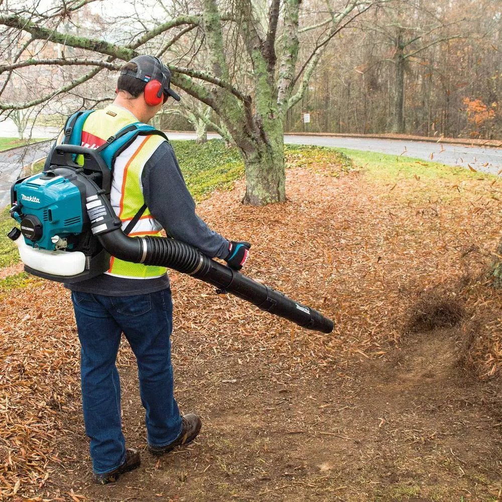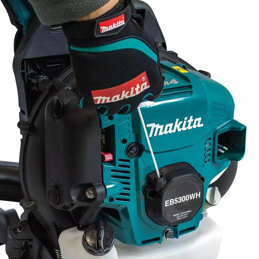 Makitas 52.5 cc MM4 Backpack Blower (EB5300WH) combines a cleaner-burning 4-stroke engine with quieter operation and the convenience of no fuel mixing. The cleaner-burning, fuel-efficient EB5300WH is a true step-up from older 2-stroke motors. Its engineered for commercial lawn and garden work and is ideal for any professional seeking a best-in-class backpack blower. The EB5300TH is powered by a 52.5 cc commercial-duty 4-stroke engine that requires no fuel mix and will deliver commercial duty performance with a maximum air speed of 184 mph and a maximum air volume of 516 cu. ft. per minute. The mechanical automatic engine decompression is engineered for quick and easy starts, with heavy duty anti-vibration mounts between the frame and engine for improved operator comfort. The EB5300WH is compact with less weight (only 19.7 lbs.) with wide padded straps and padded back panel for operator comfort. In addition, the large capacity muffler ensures quiet operation at 70dB(A).
