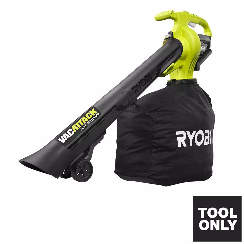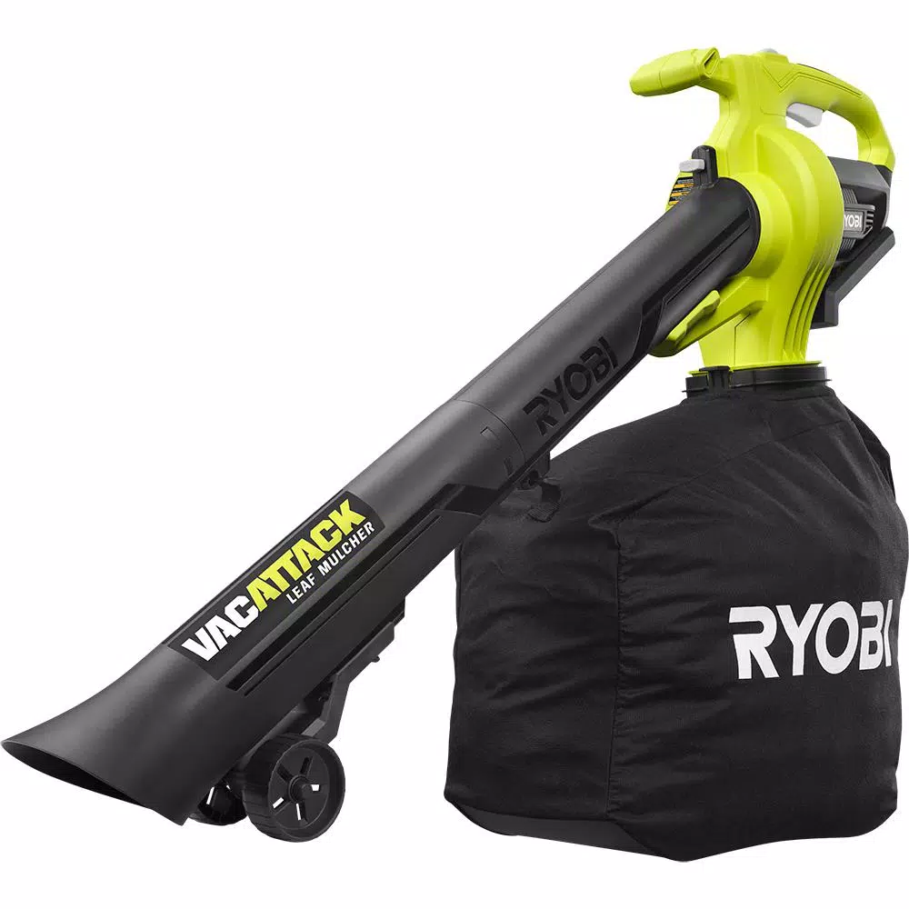 The RYOBI 40-Volt VAC ATTACK Cordless Leaf Vacuum features 2-in-1 vacuum and mulching functions to make yard clean up quick and convenient. Featuring a durable metal impeller, shred up to 16 bags of leaves down to just 1. It includes a heavy-duty bag and adjustable wheels, allowing you to easily maneuver over a variety of terrains. The variable speed dial gives you ultimate control Tear through large piles of leaves or dial back the speed for precision vacuuming in plant beds. The VAC ATTACK Cordless Leaf Vacuum is compatible with 40 plus RYOBI 40-Volt tools, batteries and chargers and is backed by a 5-year warranty.