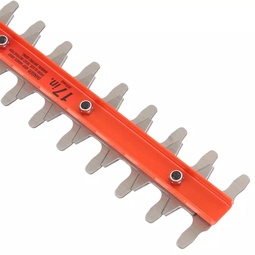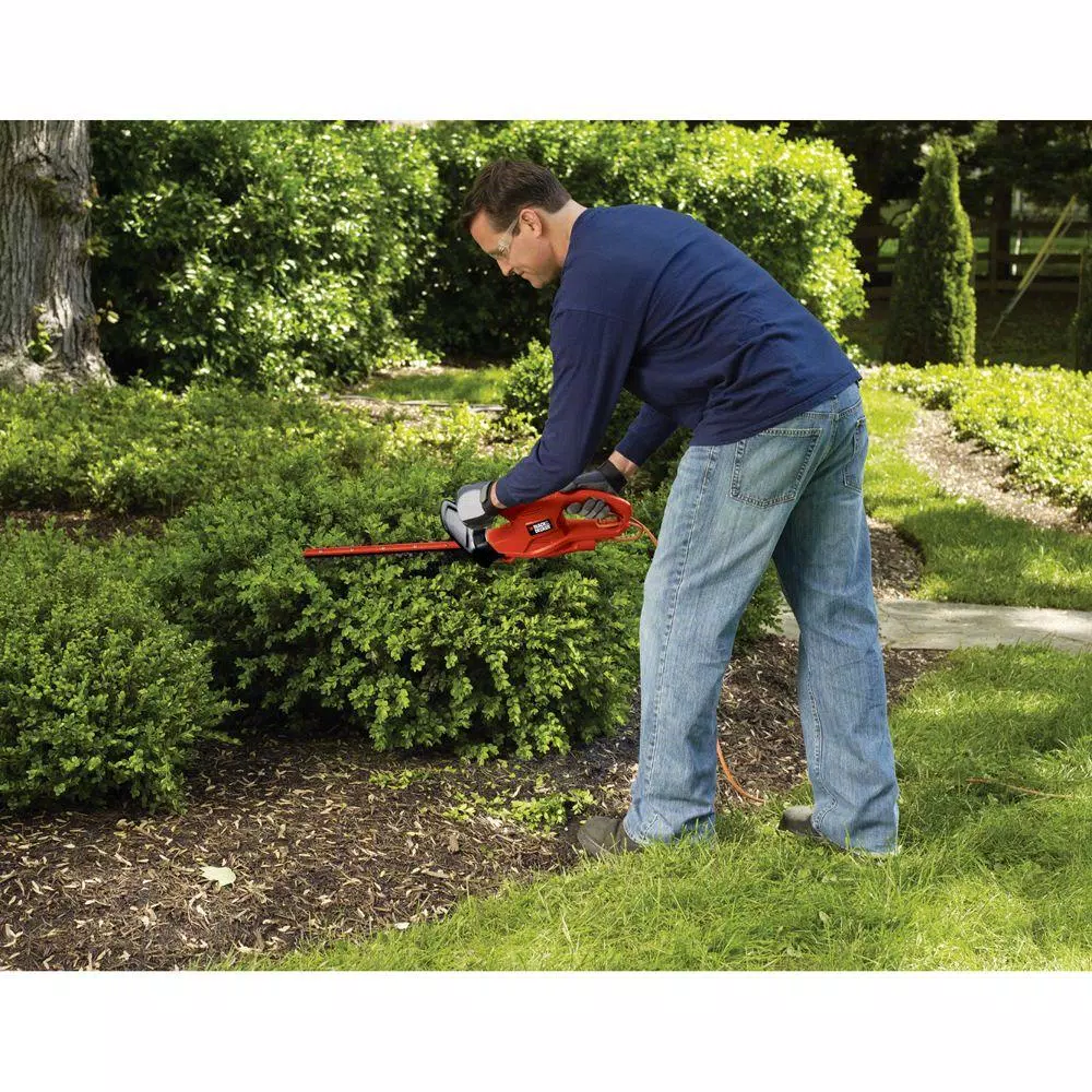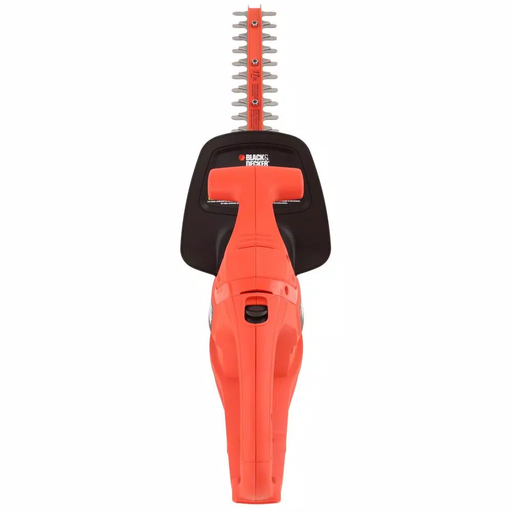 The BLACK & DECKER TR117 hedge trimmer is designed with a 3.2 Amp motor for trimming branches up 5/8 in. This trimmer features a 17 in. Dual- action Blade for up to 40% less vibration than single action blades. Pre-hardened, rust-resistant steel blades stay sharp longer.