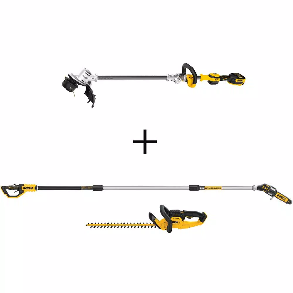 This 20-Volt MAX 14 in. String Trimmer features an innovative folding hinge mechanism that reduces the length by 41% for accessible storage and quick portability. The QuickLoad Spool allows for fast and easy line replacement of the DEWALT 0.080 in. line. The 14 in. swath gives a large cutting radius for knocking down wide sections of overgrowth in 1 pass. The variable speed trigger offers precise power control, as well as performance and runtime management with the Hi/Lo speed control switch. DCHT820B The DEWALT DCHT820B 20-Volt Max Hedge Trimmer has a high output motor and laser cut, hardened steel blades engineered for clean, fast cuts on branches up to 3/4 of an in. thick with 22 in. of blade length. The compact and lightweight 7.5 lbs. design maximizes maneuverability and minimizes stress on your arms. (Bare tool: battery and charger sold separately).