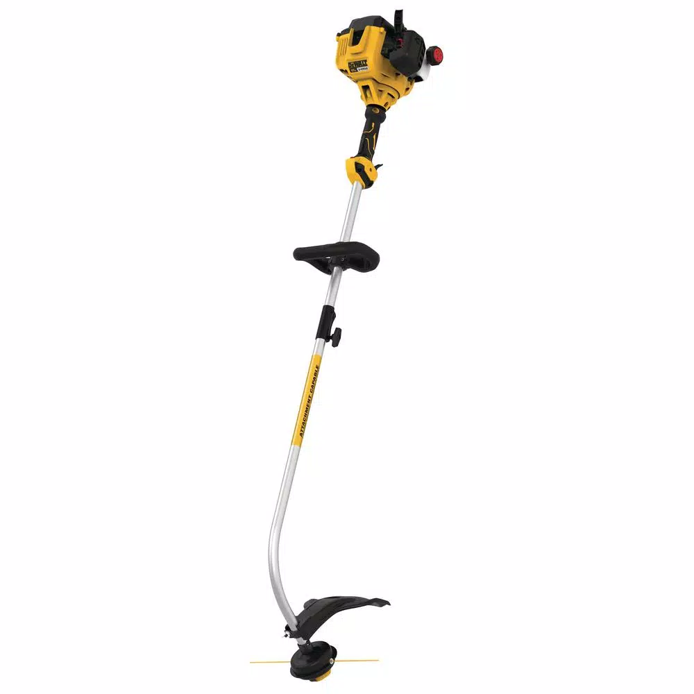 The DEWALT 2-Cycle Curved Shaft String Trimmer provides power and durability with a gas, full-crank engine to power through tough overgrowth. Trim more grass in less time with the large 17 in. cutting swath and efficient easy load bump head for fast re-spooling. It features ergonomic overmold handles for comfort even on the toughest jobs. The attachment capable string trimmer is compatible with the Trimmer Plus system (attachments sold separately).