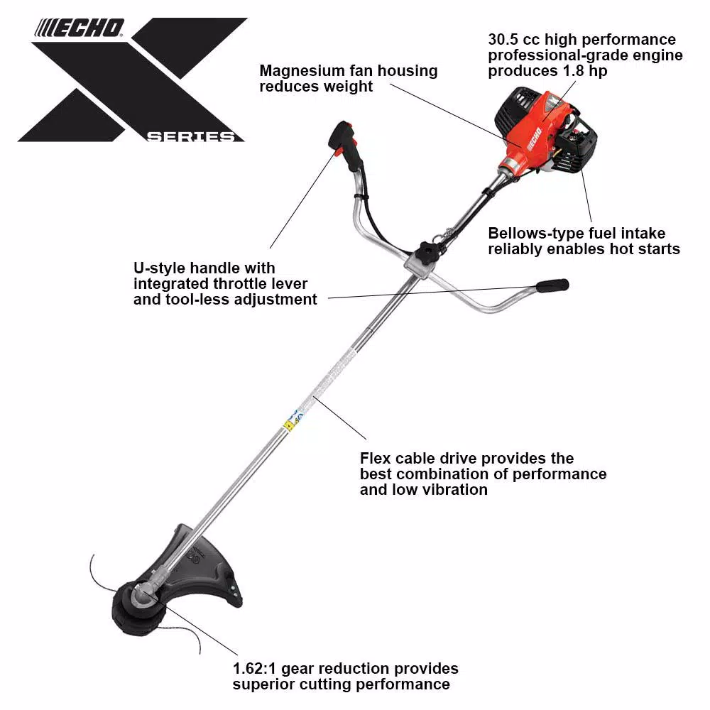ECHO’s X Series SRM-3020U brush cutter is in a league of its own when it comes to power and performance. The flex cable drive gives operators the best combination of performance and low vibration. Convert to a 25 mm blade to tackle dense weeds and small saplings.