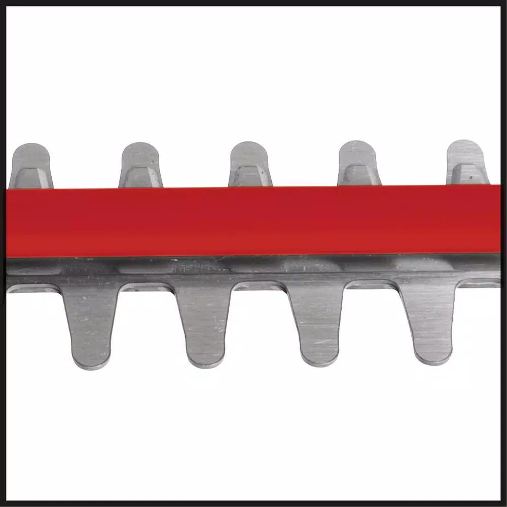 The Einhell ARCURRA Cordless Hedge Trimmer is a powerful member of the Power X-Change family from Einhell. The innovative PXC range delivers impressive performance and maximum flexibility: The lithium-ion rechargeable batteries can be freely exchanged between the tools in the Einhell system range. The blades of the ARCURRA Cordless Hedge Trimmer are made of laser-cut and diamond-ground steel and are designed for maximum precision and durability. The cordless hedge trimmer achieves a cutting length of 24.4 in. with up to 2,700 cuts per minute. The ergonomic, narrow handle of the ARCURRA is equipped with a micro-switch. The durable metal gearing ensures that the cordless hedge trimmer is built to last. When trimming the hedge, clippings can be carried away from the top of the edge with incredible ease with the provided cuttings collector. The aluminum cover over the cutters protects the blades, and the sturdy cutter guard offers protection during storage and can also be used for safe transport. Included is an impact protection guard with a holder for wall mounting. This unit is supplied without a battery and charger, which are available separately. An 18 V Power X-Change battery is required for operation of the Einhell ARCURRA cordless hedge trimmer.