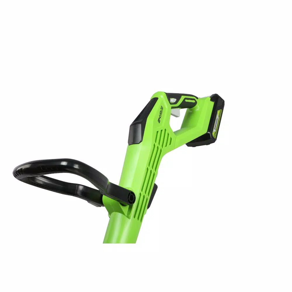 - Greenworks 24-Volt Lithium-Ion battery provides 20% more power and 35% more run-time, and delivers fade-free power with no memory loss after charging