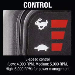- XRU12SM1 – 3-speed control (low: 4,000 RPM, medium: 5,000 RPM, high: 6,000 RPM) for power management