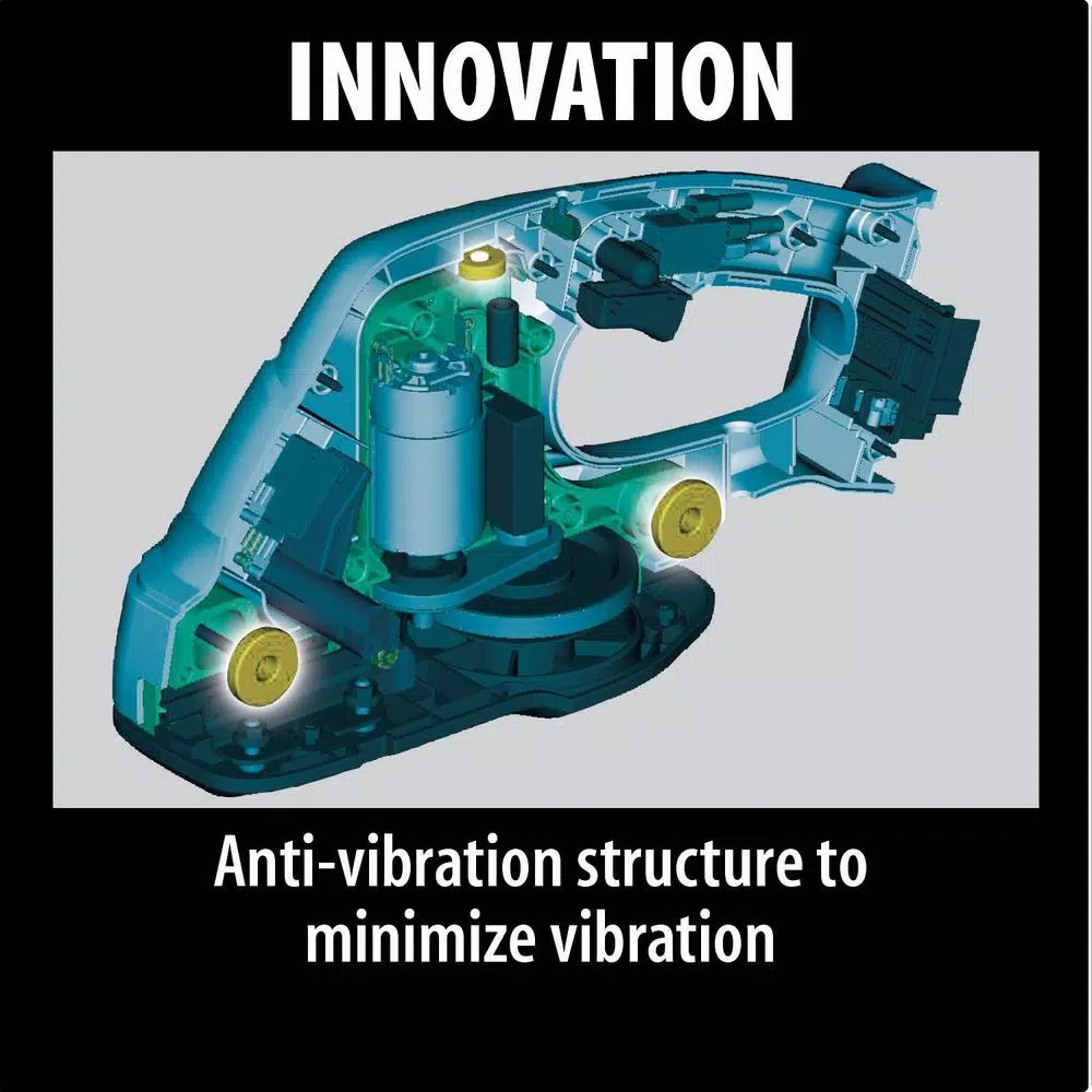 - Anti-vibration design (5 cushions within the motor housing) helps minimize vibration
