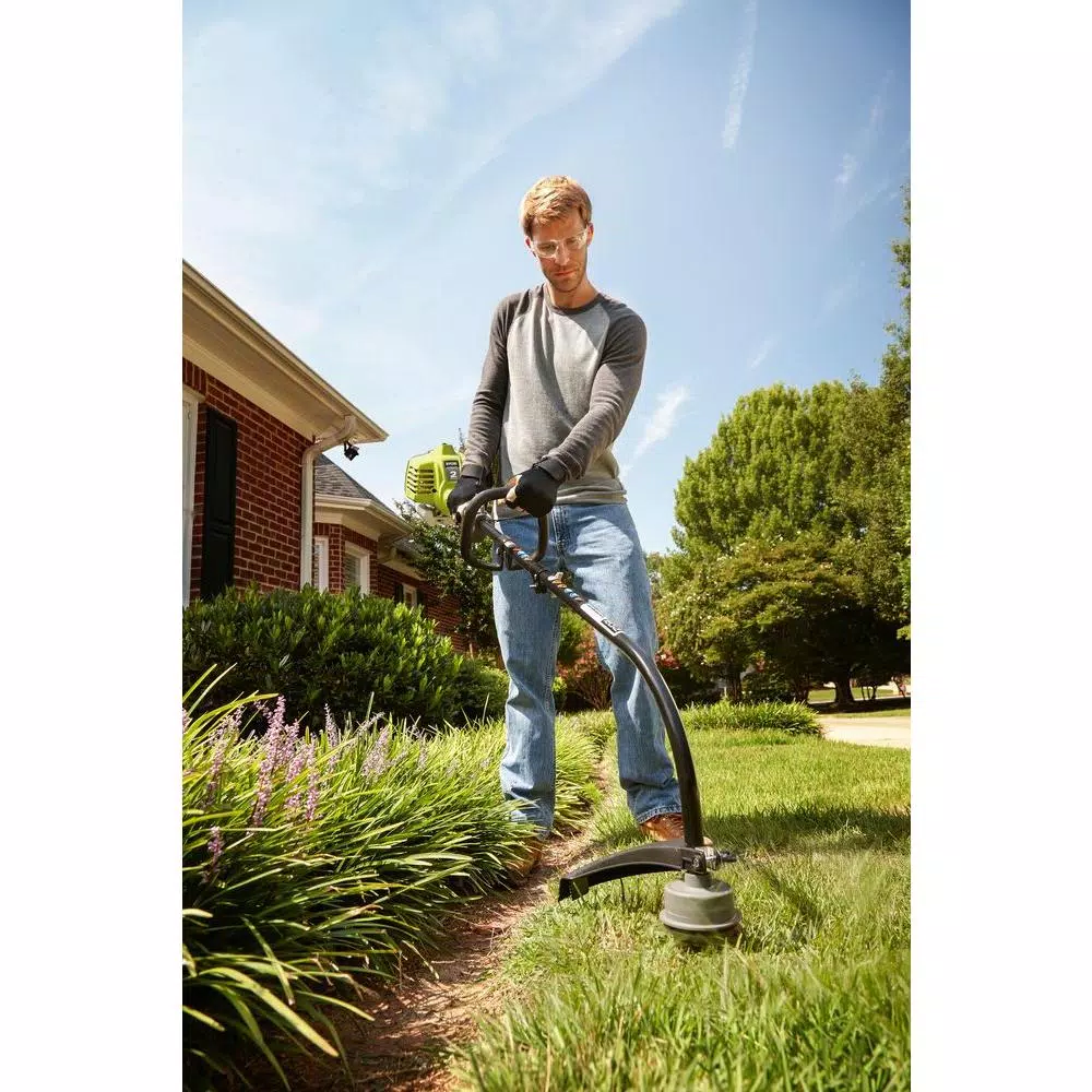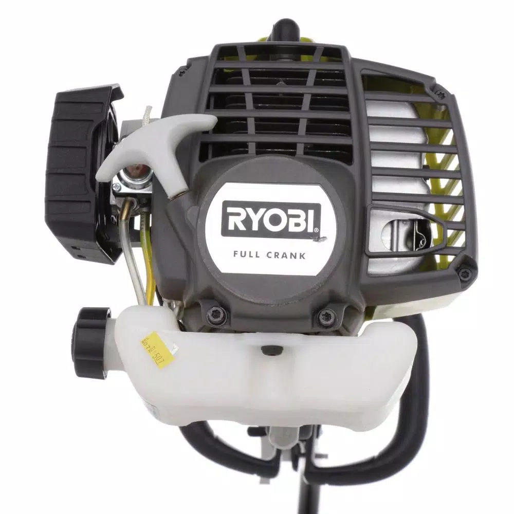 Introducing the RYOBI 2-Cycle Gas Curved Shaft String Trimmer with a full crank engine for two times longer life. This string trimmer accepts RYOBI Expand-It Universal Brand Fit attachments, adding versatility to your trimmer. Simply attach a cultivator, blower, or even a hedge trimmer to the power head and quickly move from project to project. Save time, save space and save money with the RYOBI Expand-It System. RYOBI makes string head reloads easier with the Reel-Easy String Head; thread your string, twist the head, and resume trimming. Users will experience easier starting with the Zip Start carburetor and included Ethanol Shield 2-Cycle Oil. Backed by a 1 year warranty, itโs perfect for your outdoor trimming needs.