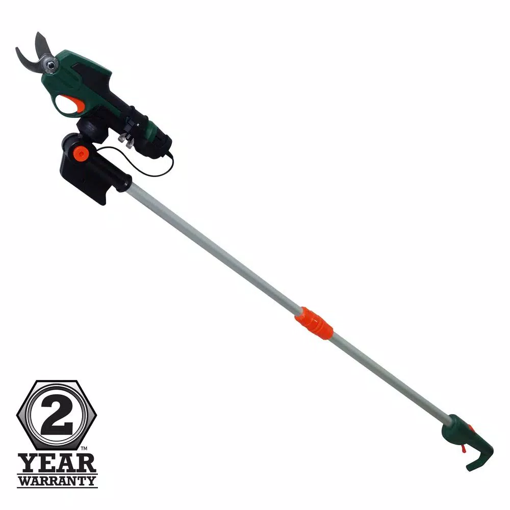 - Electric tree pruner with a dual-pull safety trigger that is easy to use