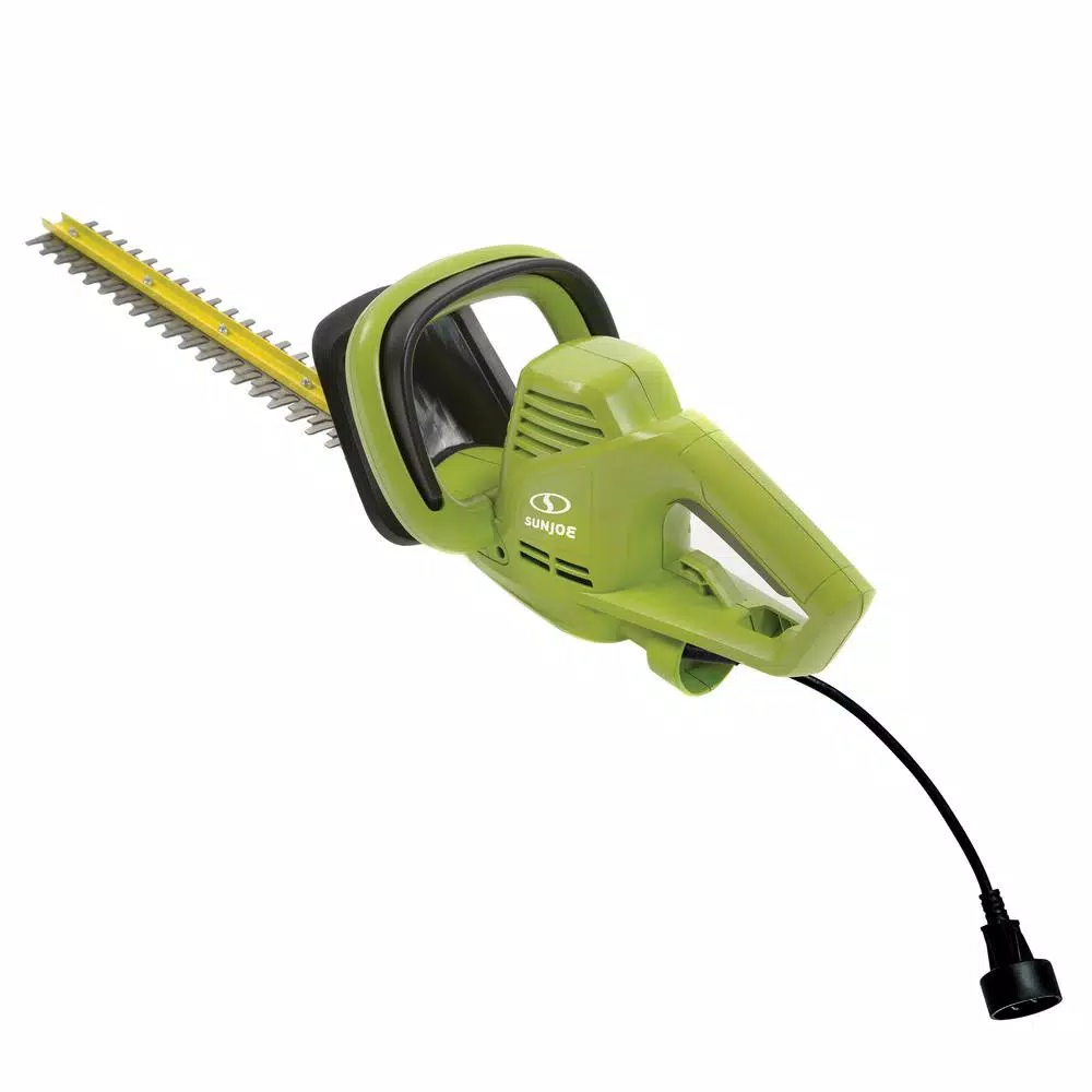 Introducing the Sun Joe HJ22HTE 22 in. Electric Hedge Trimmer. Sun Joe’s potent 3.5 Amp motor and dual-action 22 in. stainless steel blades provide the power and precision you demand to tackle your toughest shrubbing tasks. Lightweight, sleek, ergonomic and easy to maneuver at just 5 lbs. It will quickly become your go-to tool to cut quickly and cleanly through thick hedges and shrubs. Eco-friendly and electric, there’s never a need to mess with gas or oil – or worry about maintenance, tune-ups or toxic emissions. And, Sun Joe’s built-in dual-handed safety switch eliminates dangerous accidental starts for enhanced user safety.