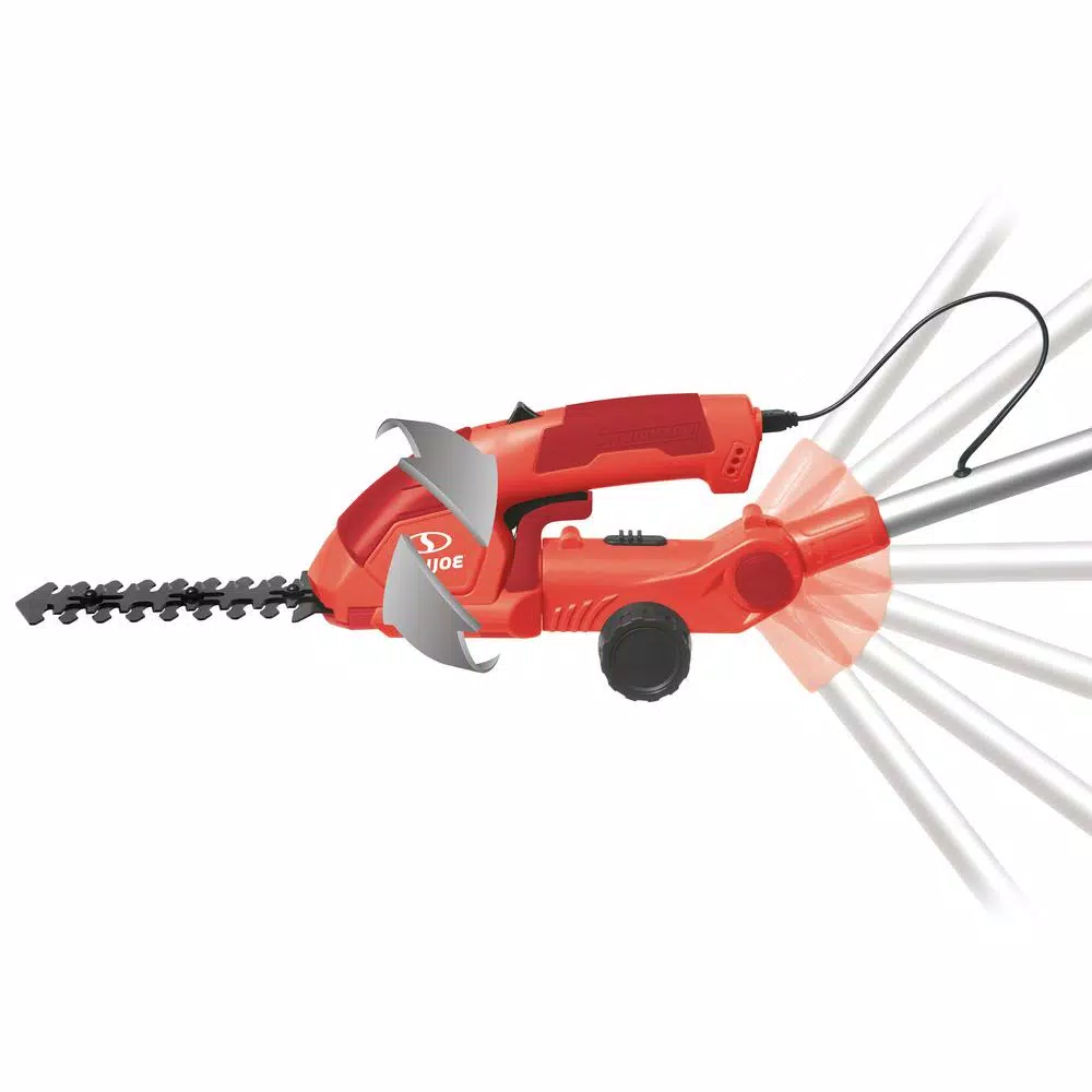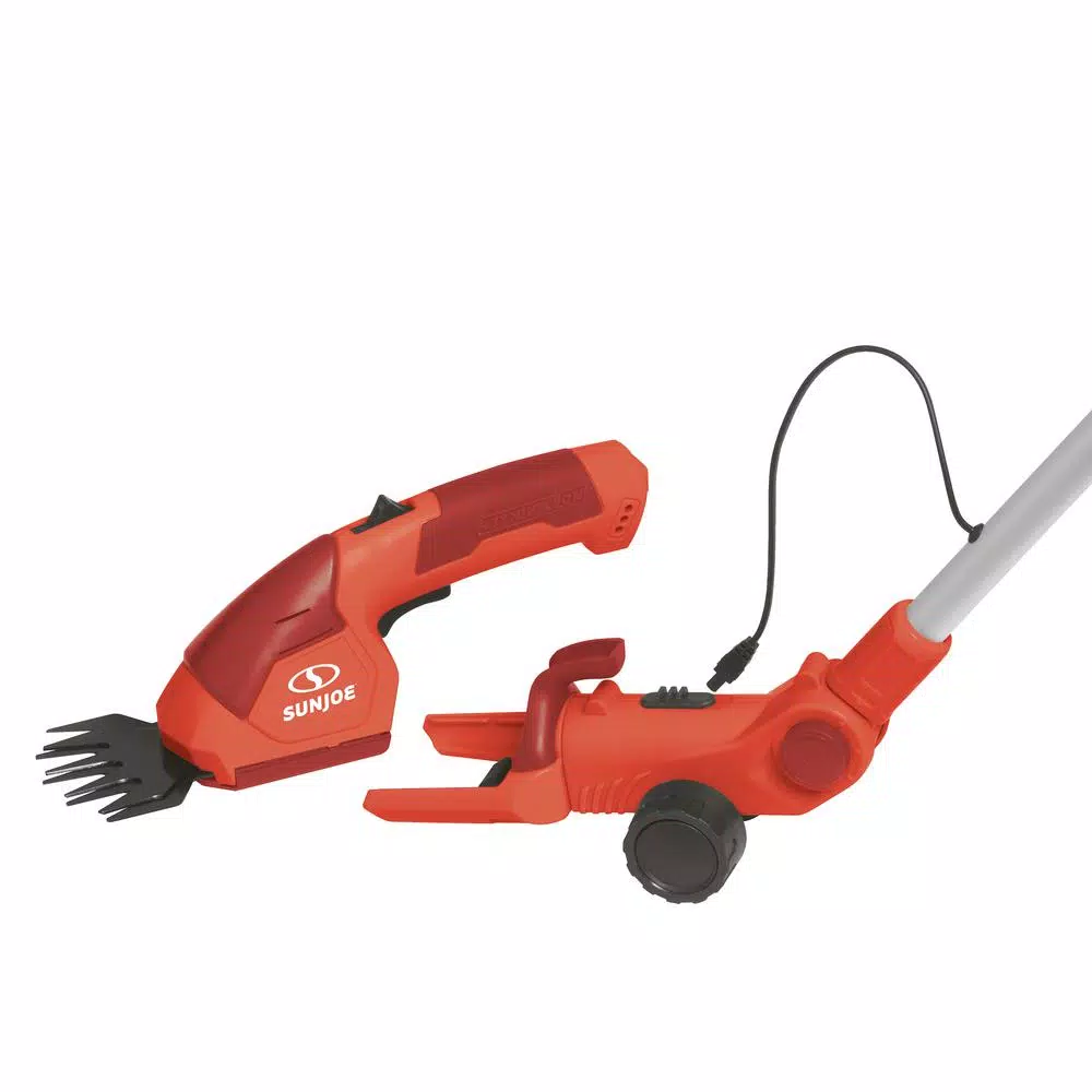 Perfect for post-mowing touch ups in tight spaces, the Sun Joe HJ605CC 2-in-1 grass shear and hedger with extension pole boasts a 7.2-Volt long-life lithium-ion battery for hassle-free, cordless operation. Power up instantly with the push of a button and start shearing or scrubbing with cord-free convenience. Rechargeable battery power makes Sun Joe eco-friendly and maintenance-free, so you’ll be able to get the job done without having to worry about gas, oil, costly seasonal tune-ups or toxic hydrocarbon emissions. And because there’s a handy 3 ft. extension pole, its even better for your back. No more bending, crawling or straining in pursuit of the perfect edge. Sun Joe connects quickly, and detaches easily when you’re done. Combining 2 popular tools into 1 versatile device, Sun Joe features an interchangeable blade system that easily converts from a grass shear to a hedge trimmer. Both the 4- in. grass shear blade and the 6 in. hedge trimmer blade are constructed of durable steel for long-lasting wear and reliable performance. At only 3.5 lbs. Hedger Joe is easy to handle and control, so you can perform a variety of grooming tasks with more comfort and less strain. It also features a safety switch to prevent accidental starting. ETL approved and backed by a full two-year warranty, the Sun Joe HJ605CC 2-in-1 cordless grass shear and hedger with extension pole will quickly become your go-to yard and garden-grooming tool of choice.